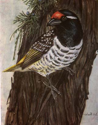 morsel of food, then flies with it to a branch where he sits and calls