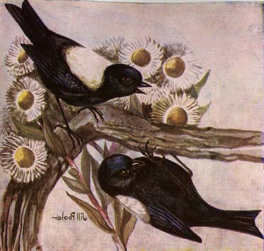 or in twos or threes on tops of trees or on ]edges of houses. The young,